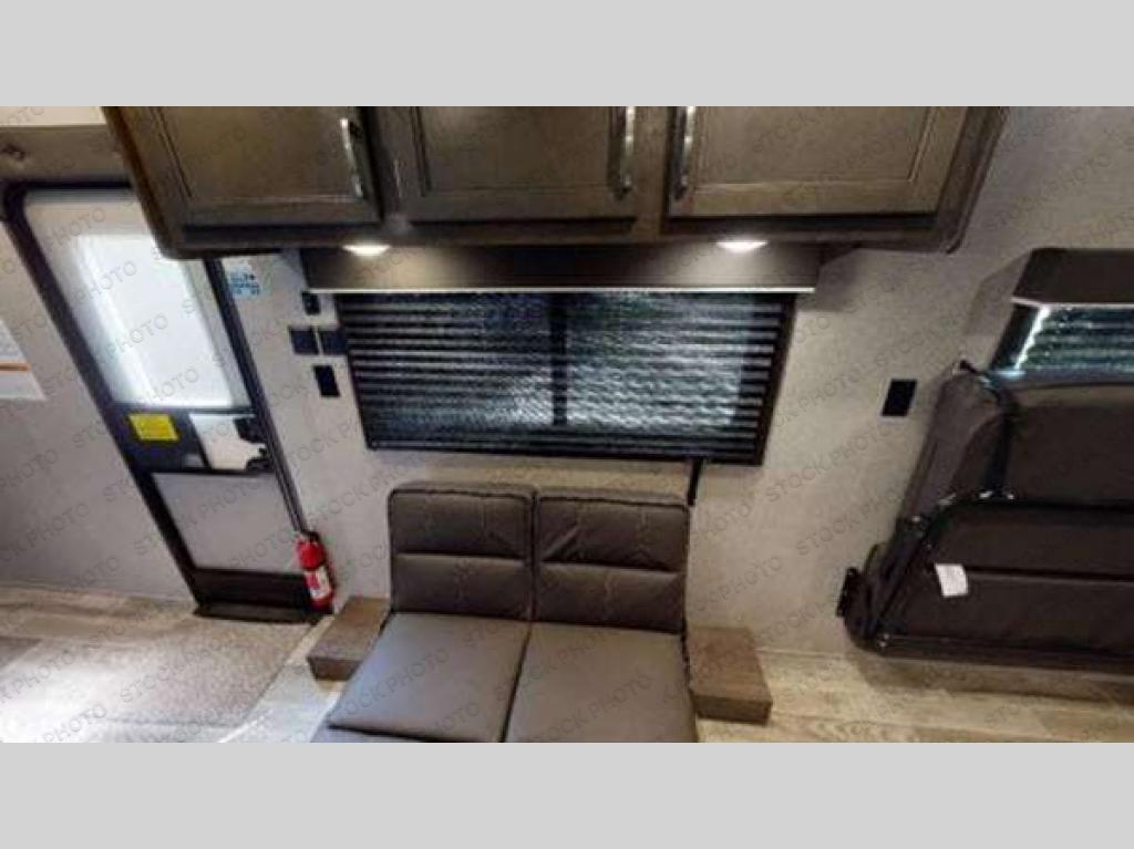 You can load up your favorite off-road toys into this toy hauler and know that they will arrive safely thanks to the D-rings welded to the frame! The whole gang can relax together with the dual convertible sofas with a removable table in between and the fold-up sofa by the entertainment center. The dual entry bathroom makes it easy for everyone to access and take a hot, steamy shower in the radius shower with a skylight above for natural lighting. The front private bedroom features a walk-around queen bed with a bedspread for you to enjoy a good night's rest, wardrobes on either side of it to hang your clothes, and the second entrance into the bathroom. Don't worry about leaving any camping items behind because the pass-through storage area has you covered!