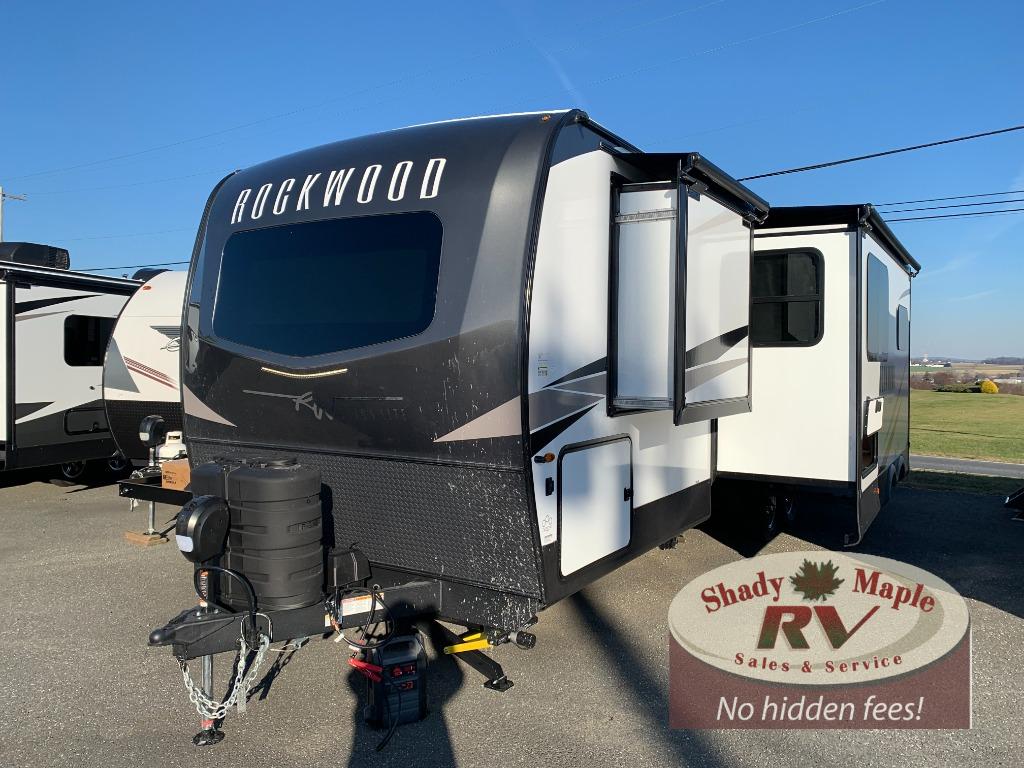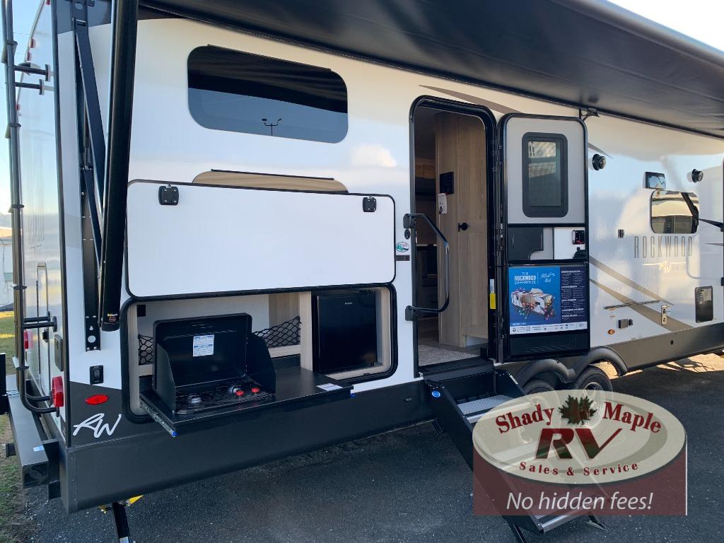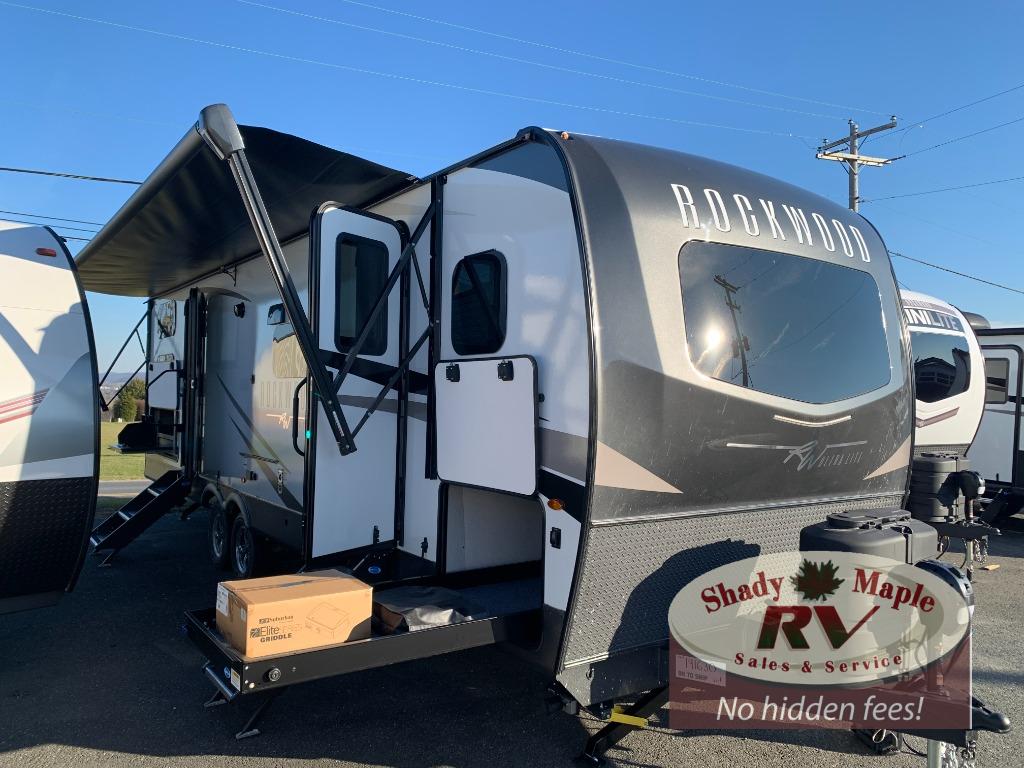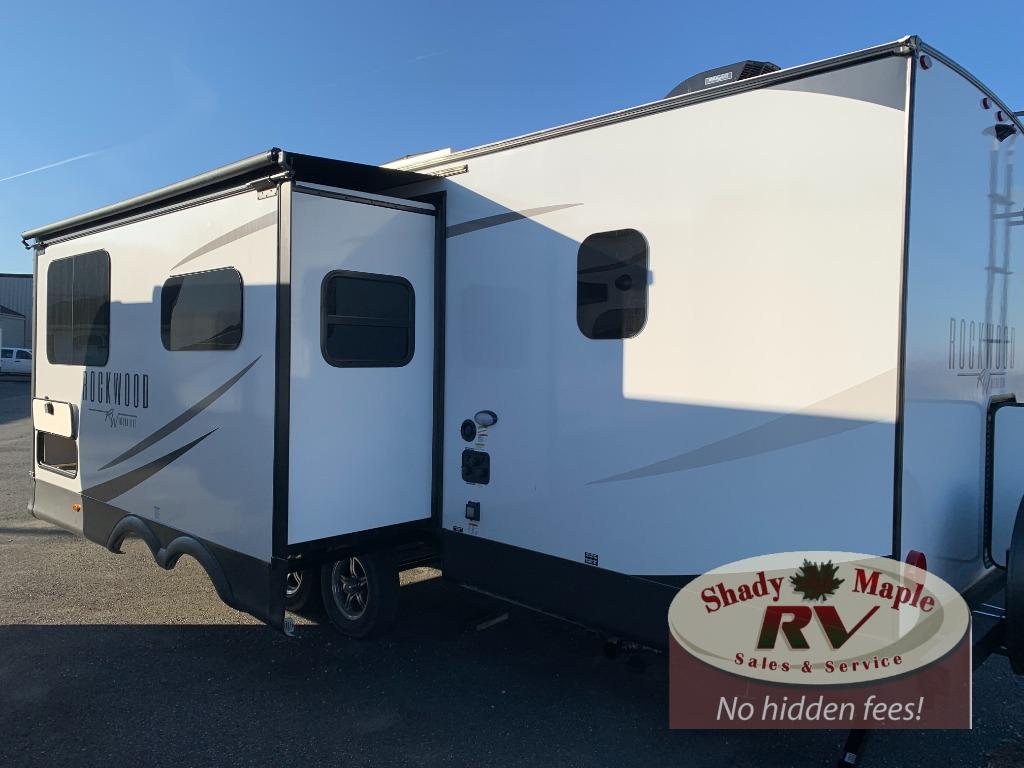 Each Rockwood Ultra Lite travel trailer by Forest River includes superior construction with a high gloss front cap, laminated white fiberglass sidewalls, and tinted frameless windows for a sleek look. You will love how easy it will be to charge a few electronics with the 200W roof solar panel with an 1800W inverter, and the AIR 360+ omnidirectional antenna with WiFi prep will let you stay connected to the outside world as you camp. The torsion axle, Rubber-Ryde suspension will make towing smooth and hassle-free, along with the nitrogen filled, Goodyear Endurance tires and the tire pressure monitor system. Interior comforts include designer kitchen backsplash, solid wood cabinet doors with hidden hinges, and night roller shades to name a few. Choose a Rockwood Ultra Lite travel trailer today!