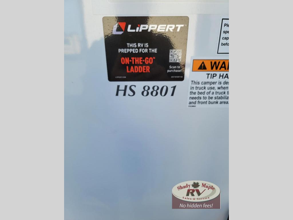Pick your favorite fishing spot and load up this hard side truck camper! You can fry your catch of the day on the three burner cooktop and enjoy a cold beverage from the refrigerator while you cook it. The 60" jackknife sofa offers a comfortable place for an afternoon nap or for an extra guest to sleep at night while you sleep on the front queen bed which has a wrap around nightstand, storage chests on either side, and a closet to keep your clothes wrinkle-free!