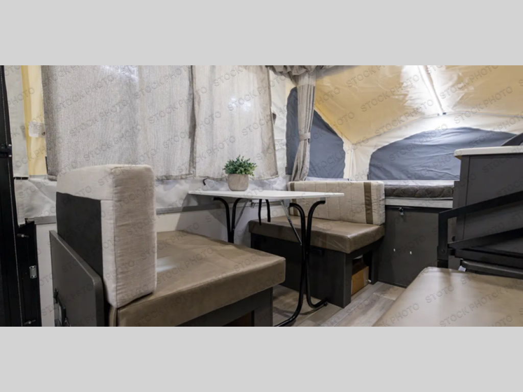 With any Rockwood Freedom Series by Forest River, you will enjoy added features to make each excursion one to remember. These folding pop-up campers feature a fiberglass laminated roof, wood plank flooring, and a two tone fiberglass exterior. The Dexter sprung axles, electric brakes, and radial tires with nitrogen will make towing easier than ever, plus there are four stabilizer jacks with sand pads to help keep your unit secure. Each model also includes an awning with LED lighting outdoors, along with a one-piece screen door, two 20 lb. LP bottles, and a power roof lift to have you set up in no-time. Inside, the 15K under-bunk A/C and 20K BTU furnace will help keep you comfortable, and the Maxxair fan will keep the air moving!