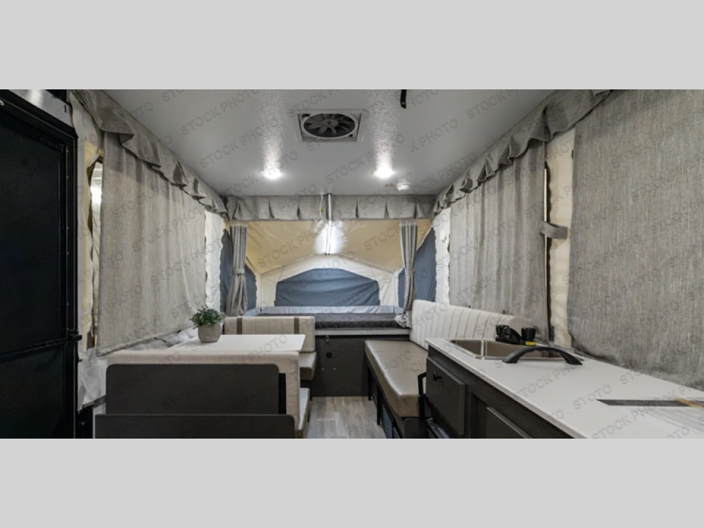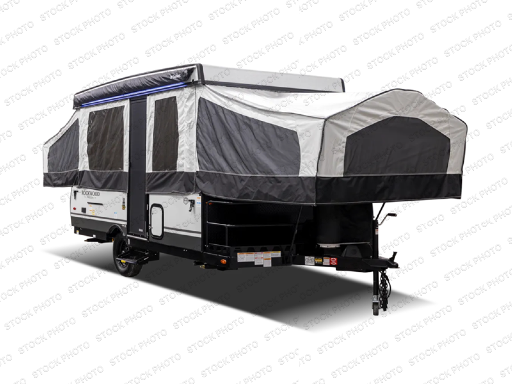 With any Rockwood Freedom Series by Forest River, you will enjoy added features to make each excursion one to remember. These folding pop-up campers feature a fiberglass laminated roof, wood plank flooring, and a two tone fiberglass exterior. The Dexter sprung axles, electric brakes, and radial tires with nitrogen will make towing easier than ever, plus there are four stabilizer jacks with sand pads to help keep your unit secure. Each model also includes an awning with LED lighting outdoors, along with a one-piece screen door, two 20 lb. LP bottles, and a power roof lift to have you set up in no-time. Inside, the 15K under-bunk A/C and 20K BTU furnace will help keep you comfortable, and the Maxxair fan will keep the air moving!