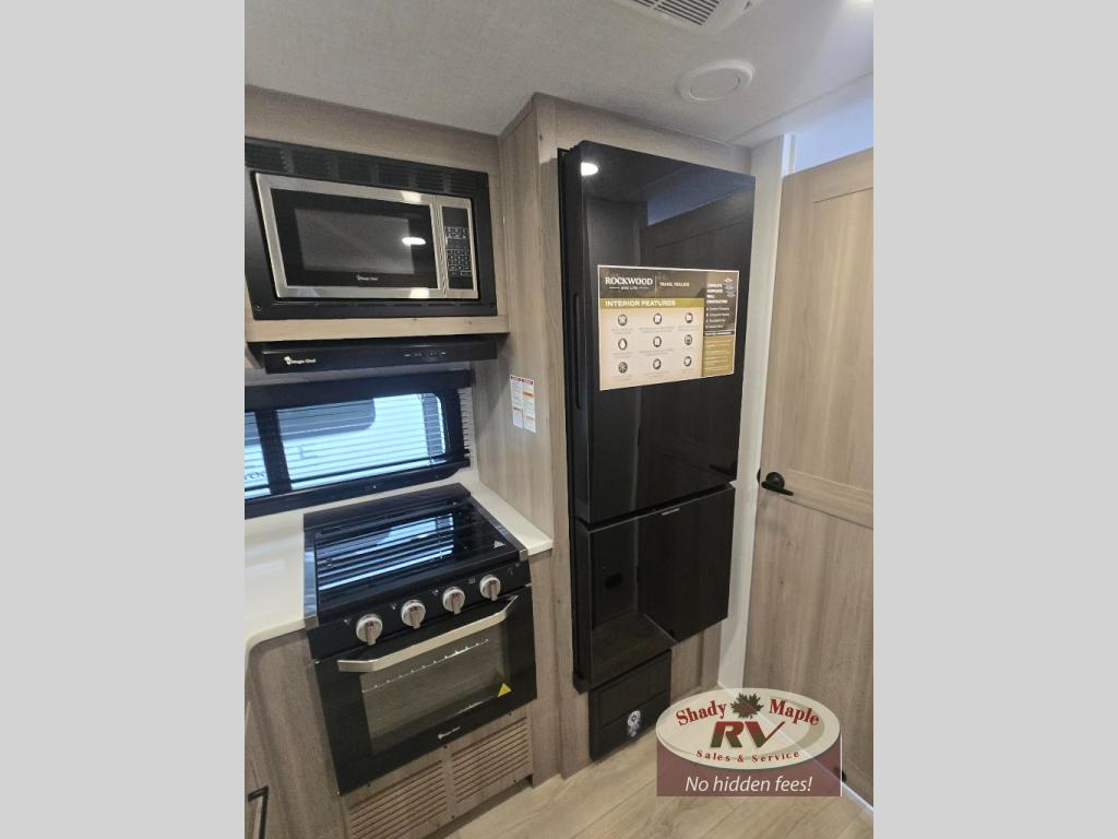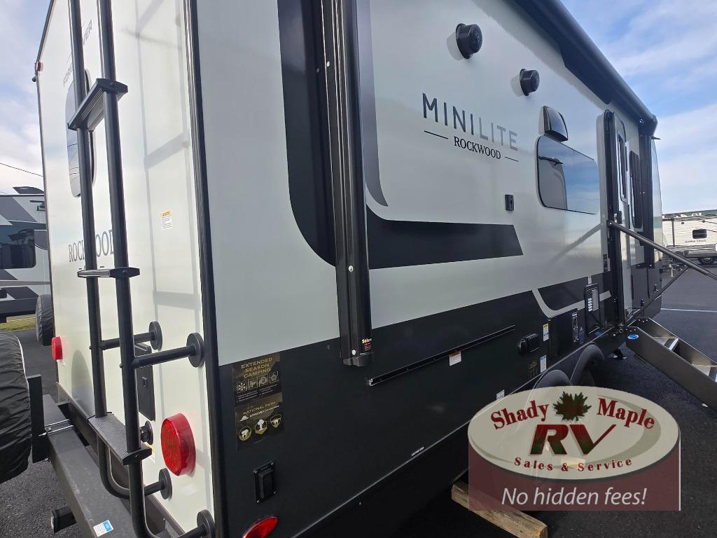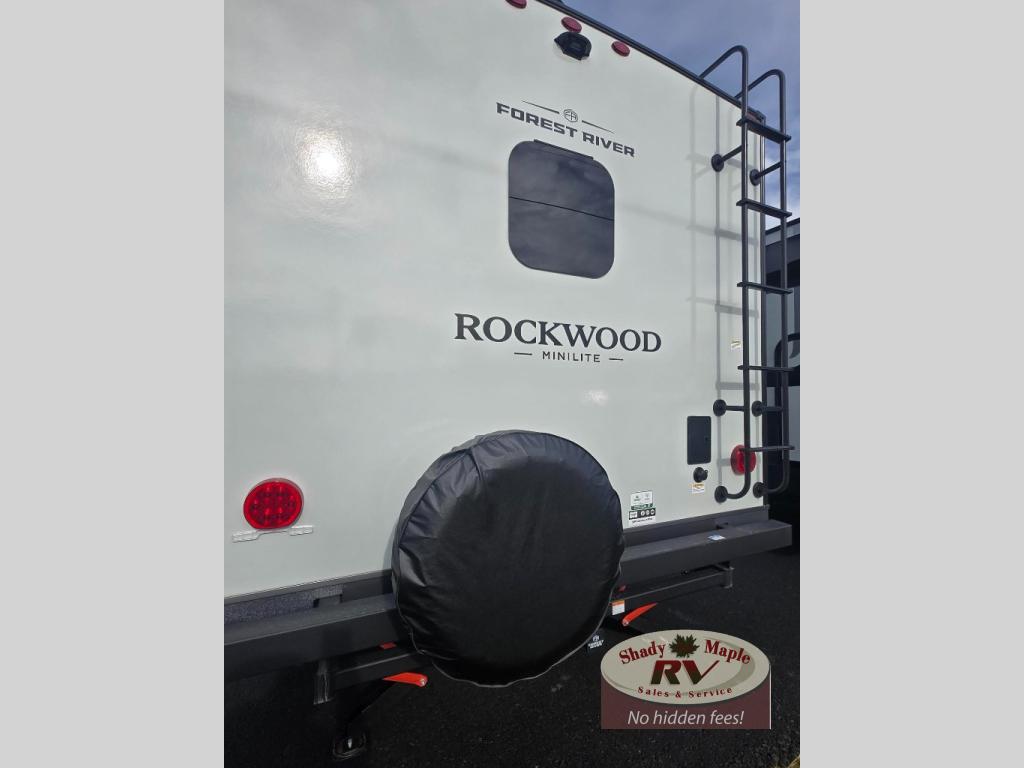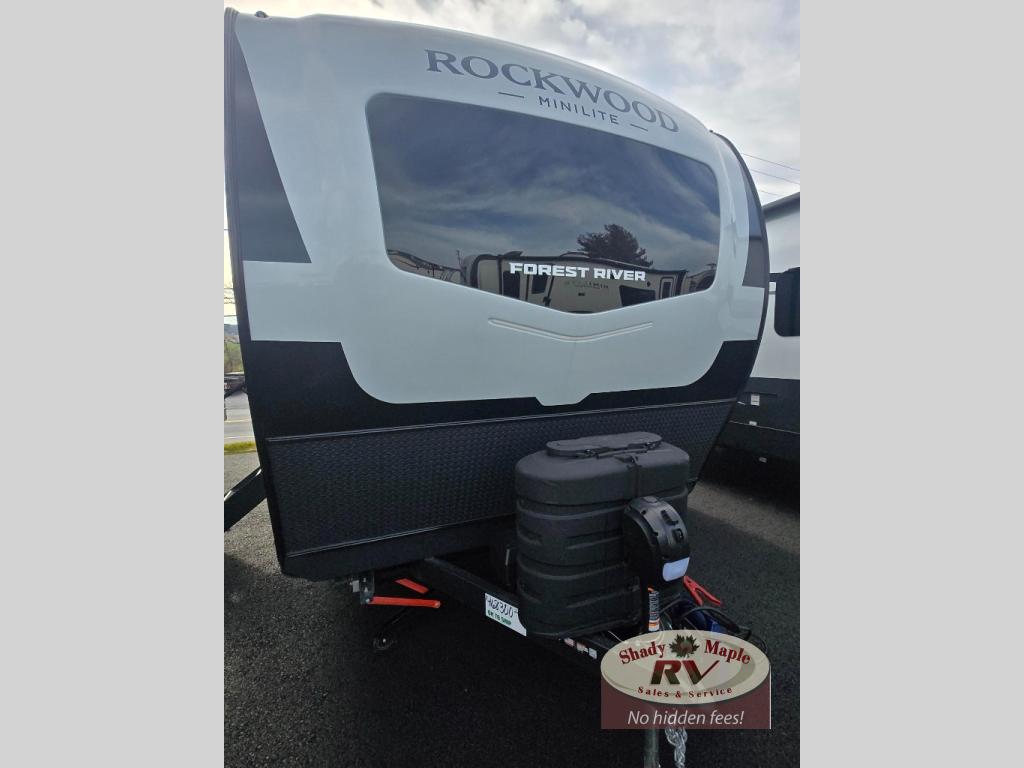 Each Rockwood Mini Lite travel trailer by Forest River is constructed with a fully laminated one-piece walkable roof, sleek frameless windows, and a six-sided full aluminum frame for strength and durability. The 12V thermostatically controlled heated tanks, plus radiant foil in the underbelly will allow you to camp well into the colder months, and the 200W roof solar panel will be perfect for a little off-gridding. Each model includes solid surface kitchen countertops, hidden hinge cabinet doors, roller shades, plus many more interior features. Having an AIR 360+ omnidirectional antenna with WiFi prep on board gives you the option to get some work done if it's needed, and the power tongue jack provides hassle-free set up, so you can enjoy more time relaxing!