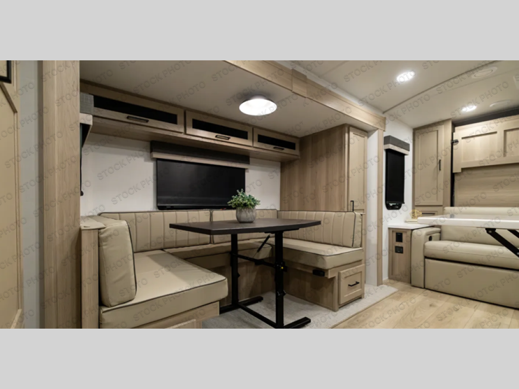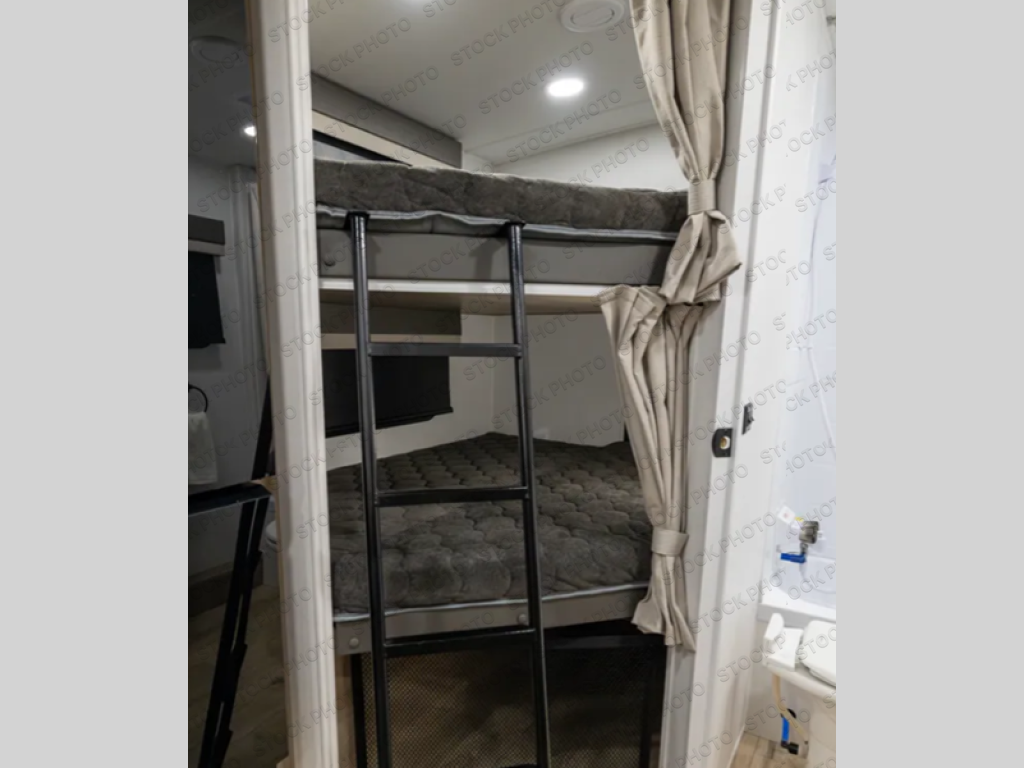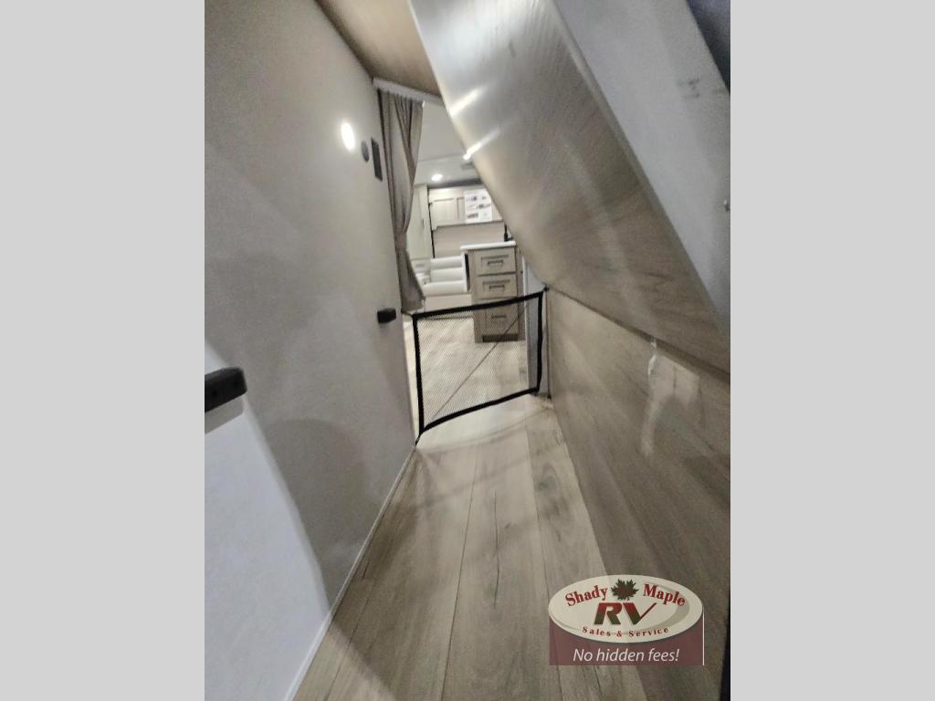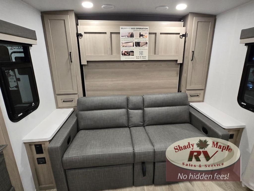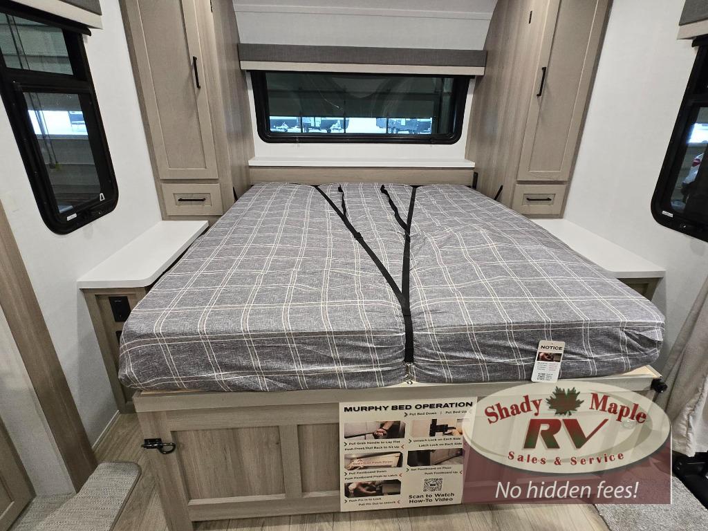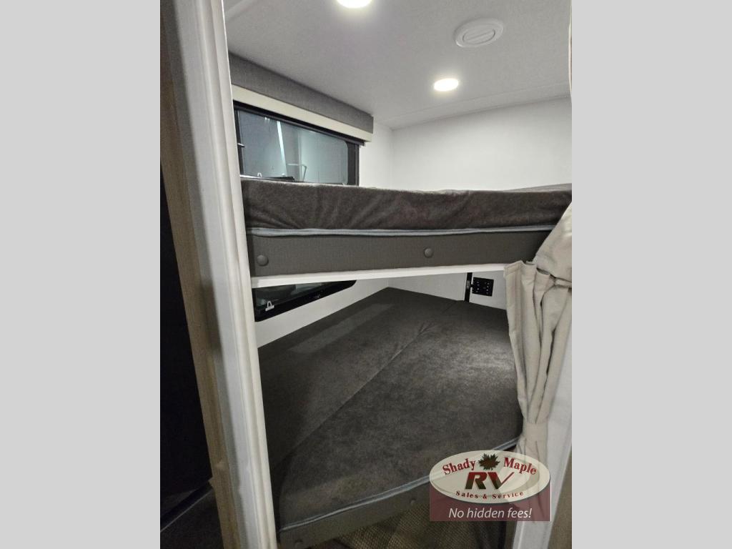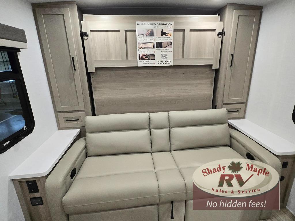 Finally, a lightweight travel trailer with double-size bunks for the kids or your guests! You'll find the versatile Murphy bed up front will be super convenient when you need more space to move around, and the 72" sofa will provide comfy seating space when the bed is put up. This model also includes a U-shaped dinette slide perfect to dine around, play games, and sleep additional guests. A TV in the main living area will allow you to watch your favorite shows in the evenings, or you may just find yourselves outdoors under the 18' power awning with LED lights. And check out the pass-through storage, plus additional exterior storage for your hiking gear!