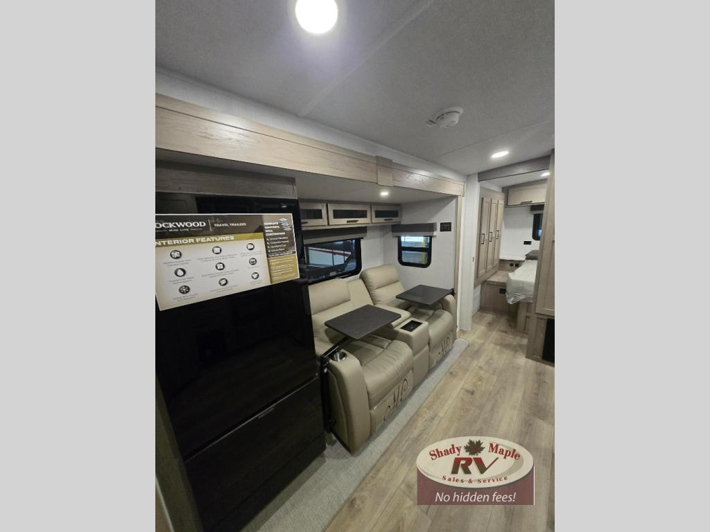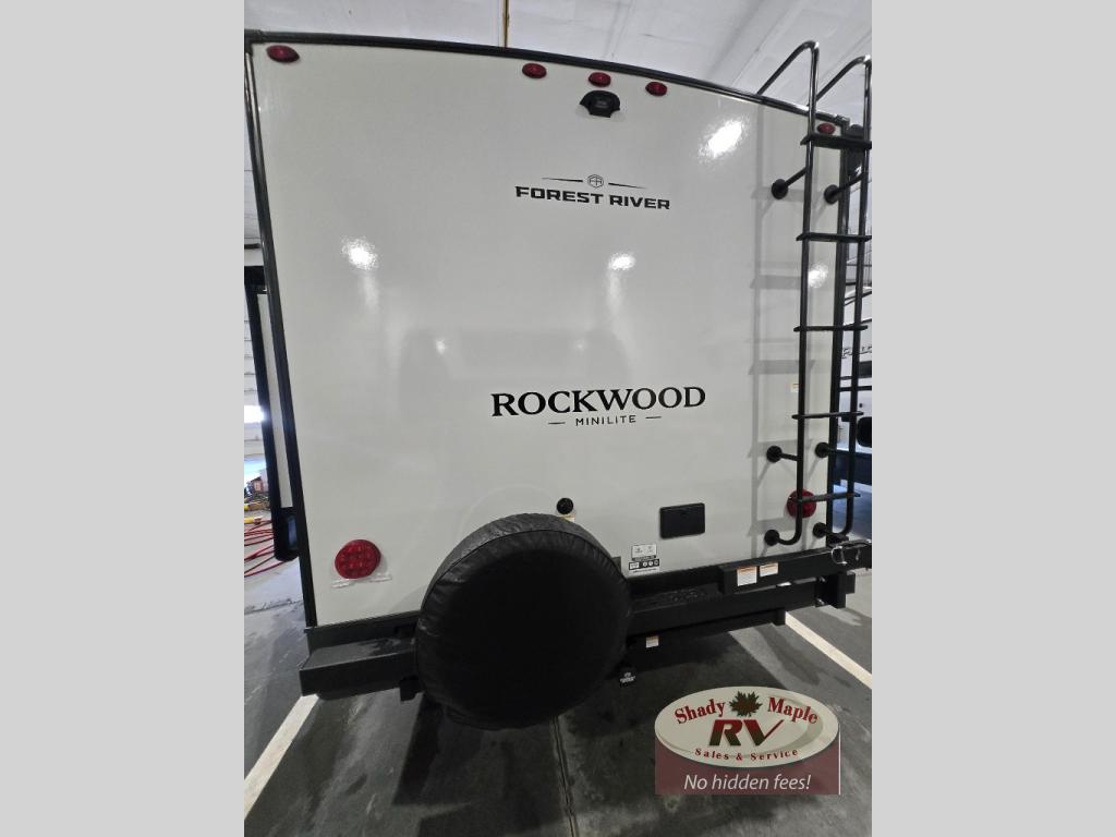 Each Rockwood Mini Lite travel trailer by Forest River is constructed with a fully laminated one-piece walkable roof, sleek frameless windows, and a six-sided full aluminum frame for strength and durability. The 12V thermostatically controlled heated tanks, plus radiant foil in the underbelly will allow you to camp well into the colder months, and the 200W roof solar panel will be perfect for a little off-gridding. Each model includes solid surface kitchen countertops, hidden hinge cabinet doors, roller shades, plus many more interior features. Having an AIR 360+ omnidirectional antenna with WiFi prep on board gives you the option to get some work done if it's needed, and the power tongue jack provides hassle-free set up, so you can enjoy more time relaxing!
