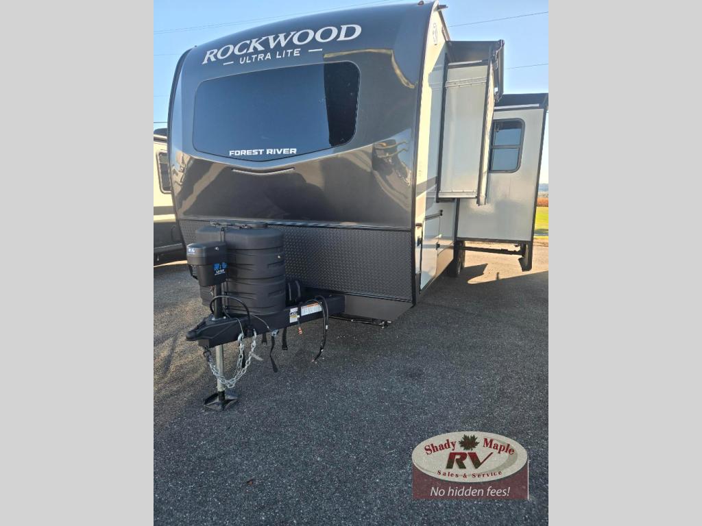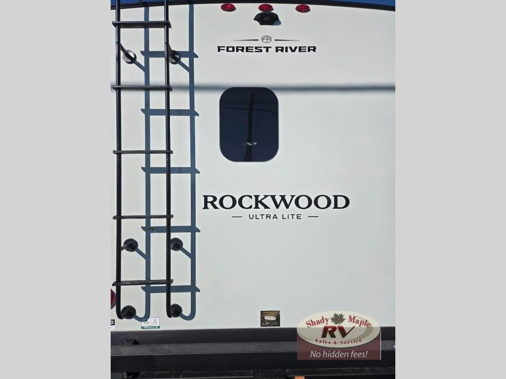 Each Rockwood Ultra Lite travel trailer by Forest River includes superior construction with a high gloss fiberglass cap, aluminum cage construction, and a power awning with LED lighting for a cozy and functional outdoor space. The torsion axle, power tongue jack will make towing smooth and hassle-free, along with the nitrogen filled, Goodyear Endurance tires and the tire pressure monitor system. Interior comforts include kitchen sink with high rise faucet, hidden hinge cabinet doors, and roller shades to name a few. Choose a Rockwood Ultra Lite travel trailer today!