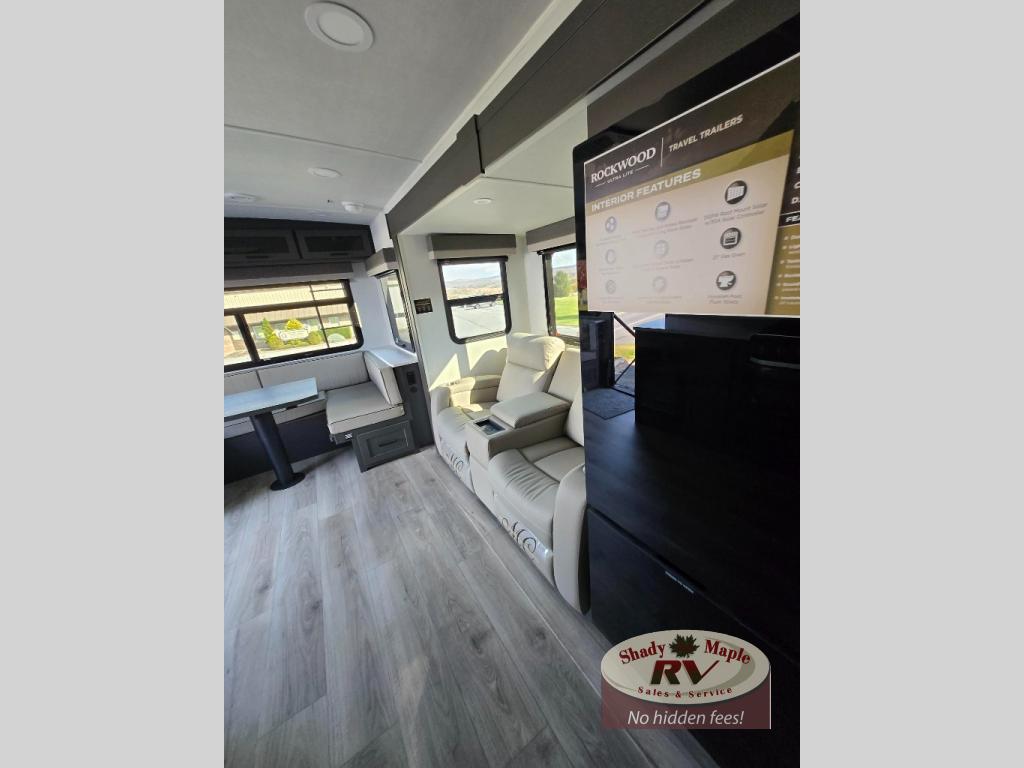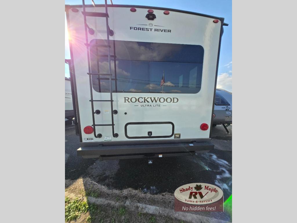 Each Rockwood Ultra Lite travel trailer by Forest River includes superior construction with a high gloss fiberglass cap, aluminum cage construction, and a power awning with LED lighting for a cozy and functional outdoor space. The torsion axle, power tongue jack will make towing smooth and hassle-free, along with the nitrogen filled, Goodyear Endurance tires and the tire pressure monitor system. Interior comforts include kitchen sink with high rise faucet, hidden hinge cabinet doors, and roller shades to name a few. Choose a Rockwood Ultra Lite travel trailer today!