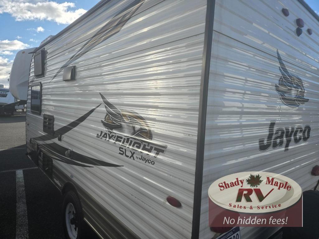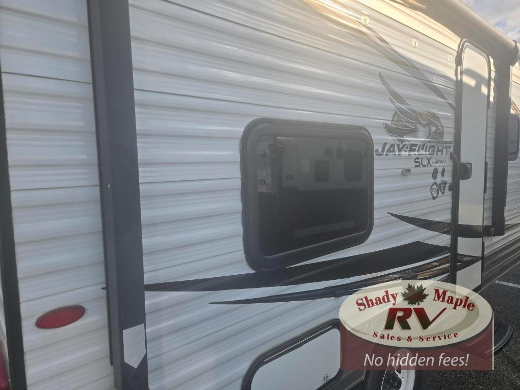 With any Jay Flight SLX 7 travel trailer your vacationing couldn't be simpler. These units provide you with all of the comforts needed along with complete reliability on the road. Jayco's industry-leading 2-year limited warranty will provide you with peace of mind regarding your purchase. You will appreciate the seamless Magnum Truss roof system and American-made Goodyear tires, as well as keyed-alike entry and baggage doors for ease of use so you only need to keep track of one key! On the inside, you will love the chocolate Maple cabinet doors, LED lighting throughout, plus comfortable sleeping accommodations with a 4" thick mattress or a queen Simmons mattress in select models to ensure you get a great night's rest every night! And, for your temperature control comfort inside, there is a wall-mount 8,000 BTU AC unit so you can stay cool even on the hottest summer day! What are you waiting for, come select your favorite Jay Flight SLX 7 model today!