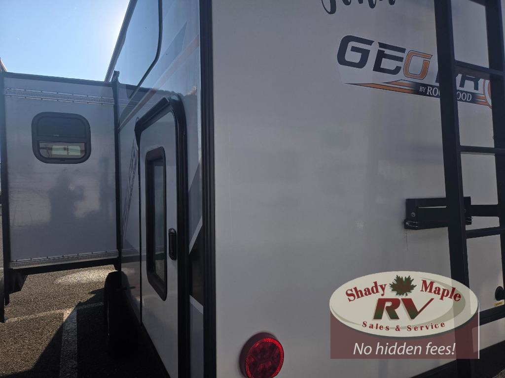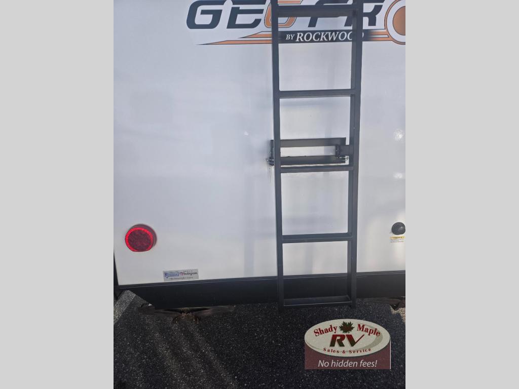 The Forest River Rockwood Geo Pro travel trailer is built to be towed by most "crossover" vehicles and smaller SUVs. Each model is built with six-sided aluminum cage construction, a torsion axle, Rubber-Ryde suspension, and includes a WiFi Ranger WiFi Booster, a power tongue jack, a Water-Pur filtration system, plus more depending on the model you choose. You will also appreciate the outdoor speaker for listening to the AM/FM stereo with Bluetooth and USB as you enjoy the outdoors. Choose your Geo Pro today!