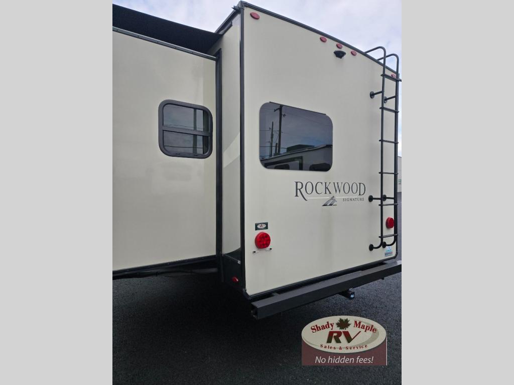 Each Forest River Rockwood Signature Ultra Lite travel trailer and fifth wheel is constructed with a painted fiberglass front cap with clear coat, frameless windows, and a fully laminated one-piece walkable roof for easy cleaning after a weekend at the campground. You will appreciate the radiant foil in the underbelly, front caps, and slide out floors, plus each model includes 12v thermostatically controlled heated tanks so you can camp year around if you choose. Inside, you will find residential solid-surface kitchen countertops, an 86" interior height in the travel trailers, soft-closing drawer guides in the fifth wheels, and many more at-home features. These travel trailers and fifth wheels also include many hassle-free conveniences, such as a Water-Pur filtration system, a tire pressure monitor system, back-up camera prep, and the list goes on!