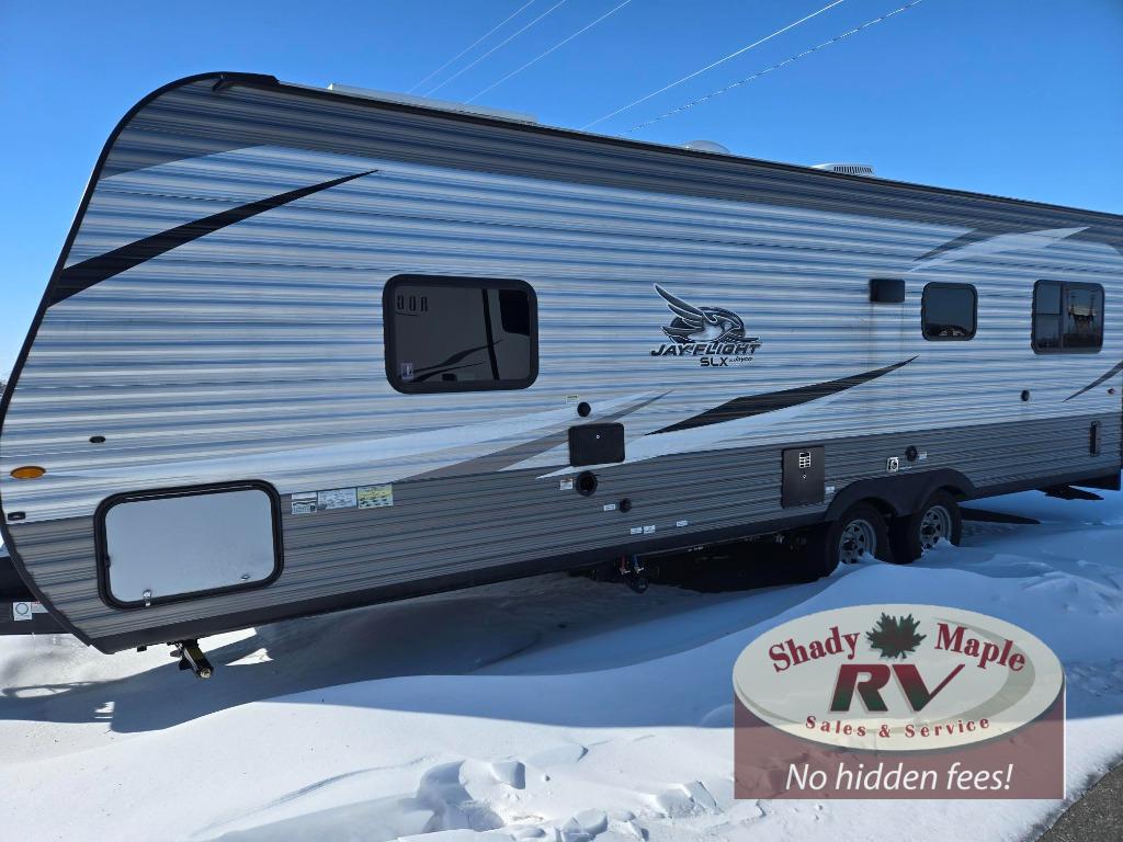 Enjoy family time with lots of room to stretch out in any one of these Jayco Jay Flight SLX 8 toy haulers! Jayco uses the top-quality materials and innovative manufacturing techniques to create the Magnum Truss Roof System for a 50% stronger roof than any other in the industry. The screwed construction creates a more firmly secured structure and the 2" x 2" vertical studs provide smoother edges for safer wiring to reduce the risk of electrical shorts. Each model comes with the mandatory Customer Value Package which includes extra luxurious features like the three burner range, Keyed-Alike™ entry and baggage doors, the outside shower, the JaySMART™ LED lighting, and the bedspread. The Goodyear® Endurance® tires, the front diamond plate, and the axles with electric, self adjusting brakes and galvanized steel impact resistant wheel wells ensure you will arrive safely to each destination. Come see just how comfortable these toy haulers are!