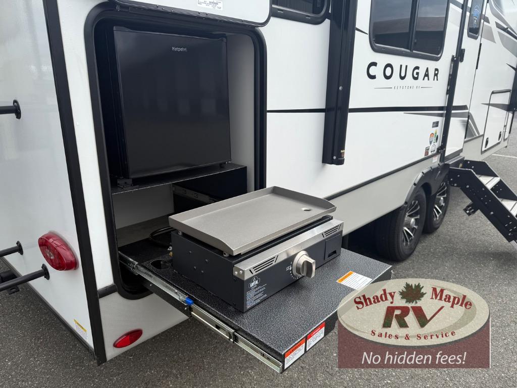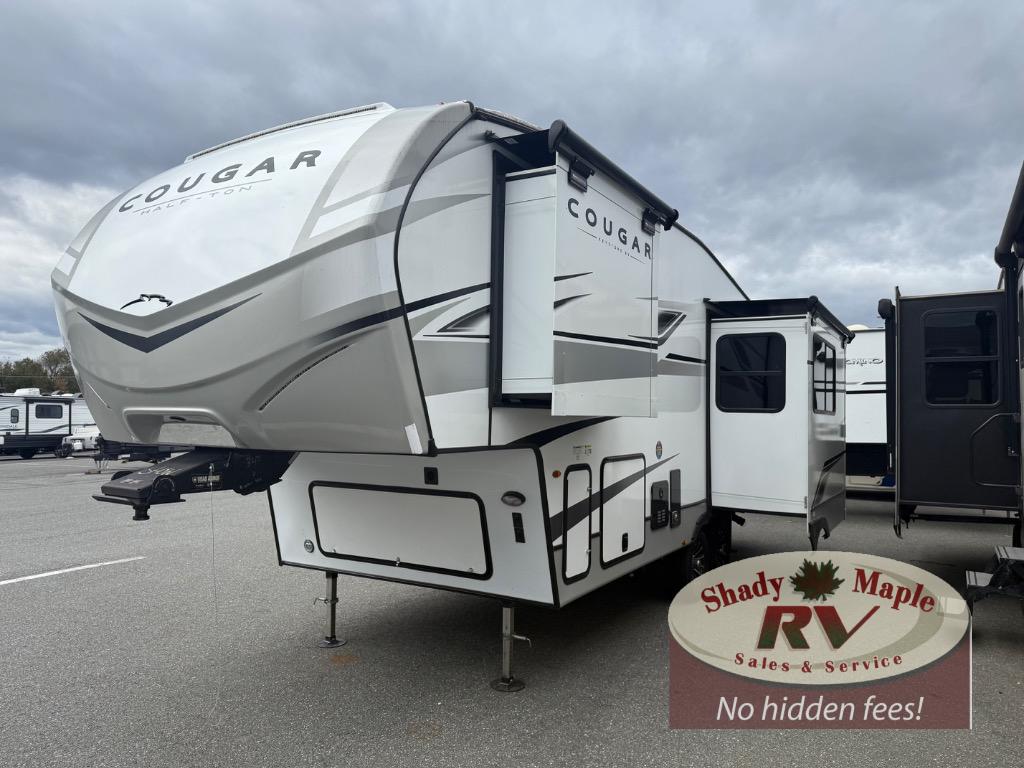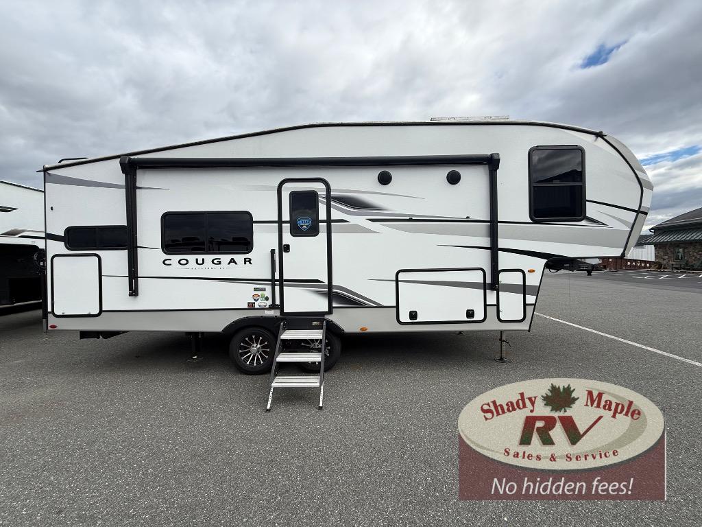 The Keystone Cougar Half-Ton fifth wheel and travel trailers are known as one of America's favorites for a reason! Some of those reasons are the exclusive features that come from Keystone, like the Winegard Air 360+ omni-directional rooftop antenna, the in-floor heating ducts, and the Hyper Deck flooring. The Cougar Half-Ton has a Climate Guard protection package to keep you safe during inclement weather, along with two roof attic vents, PEX plumbing and more. Use the 21" Furrion range with Piezo ignition to create all of those familiar meals from home, and enjoy endless hot showers with the Girard tankless on-demand water heater!